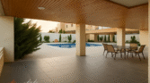 مدخل رئيسي فاخر – صالون وضيافة راقية – غرفة طعام أنيقة – حمام ضيوف – غرفة معيشة عائلية – مطبخ جورسال راكب – بركة سباحة خارجية مدفأة 5×10م – جلسات وتراسات خارجية مع حديقة منظمة ونافورة