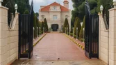 الأسوار الخارجية: جدران مرتفعة مطلية باللون الأبيض مع لمسات ديكورية أنيقة.
