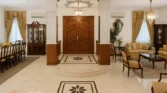 الأرضيات والتشطيبات: رخام إيطالي فاخر نوع روزا أورورا، مع أسقف معزولة بلياسة خاصة لمنع الرطوبة.