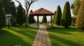 الحديقة: حديقة أمامية وخلفية بمساحة تقارب 1500 متر مربع، تتضمن مسطحات خضراء وأشجار مثمرة متنوعة.