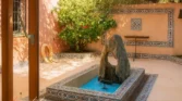 تصميم يتناسب مع المناخ: سقف مبلط وجدران سميكة (دافئ شتاءً وبارد صيفًا).